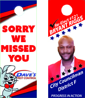 Easy-to-notice prints commonly placed on home or office door knobs.