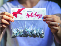 Bag toppers or header cards are a simple and cost-effective way to create brand awareness and package any type of product. Place your product in a polybag and attach the fold-over card to the bag using staples, double-sided tape, or glue.